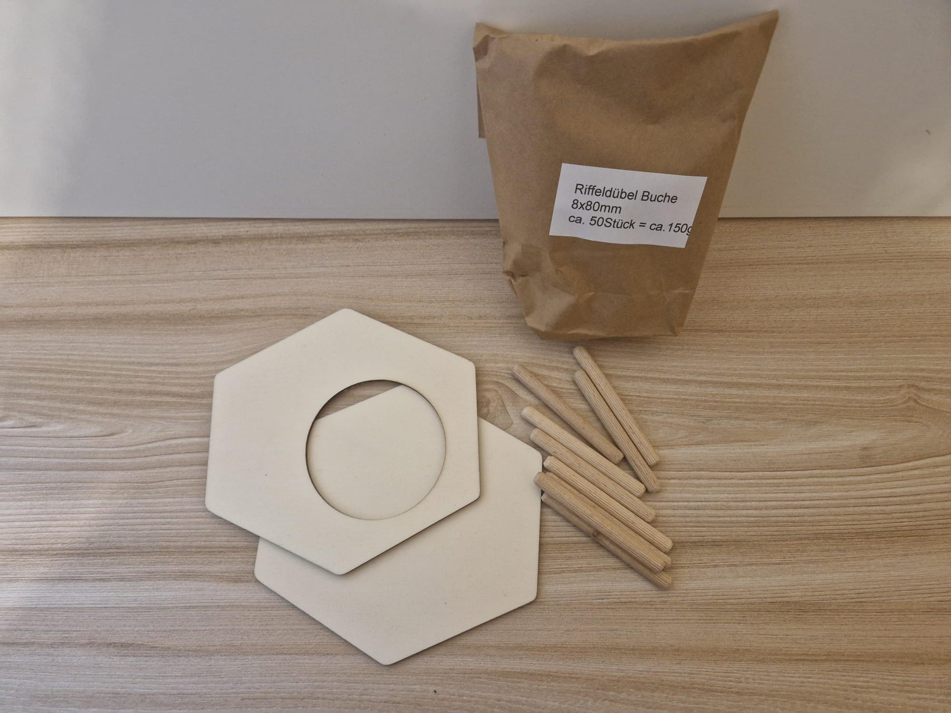 - Buche Riffeldübel ca. 50Stück (ca. 150g) in 8x80mm